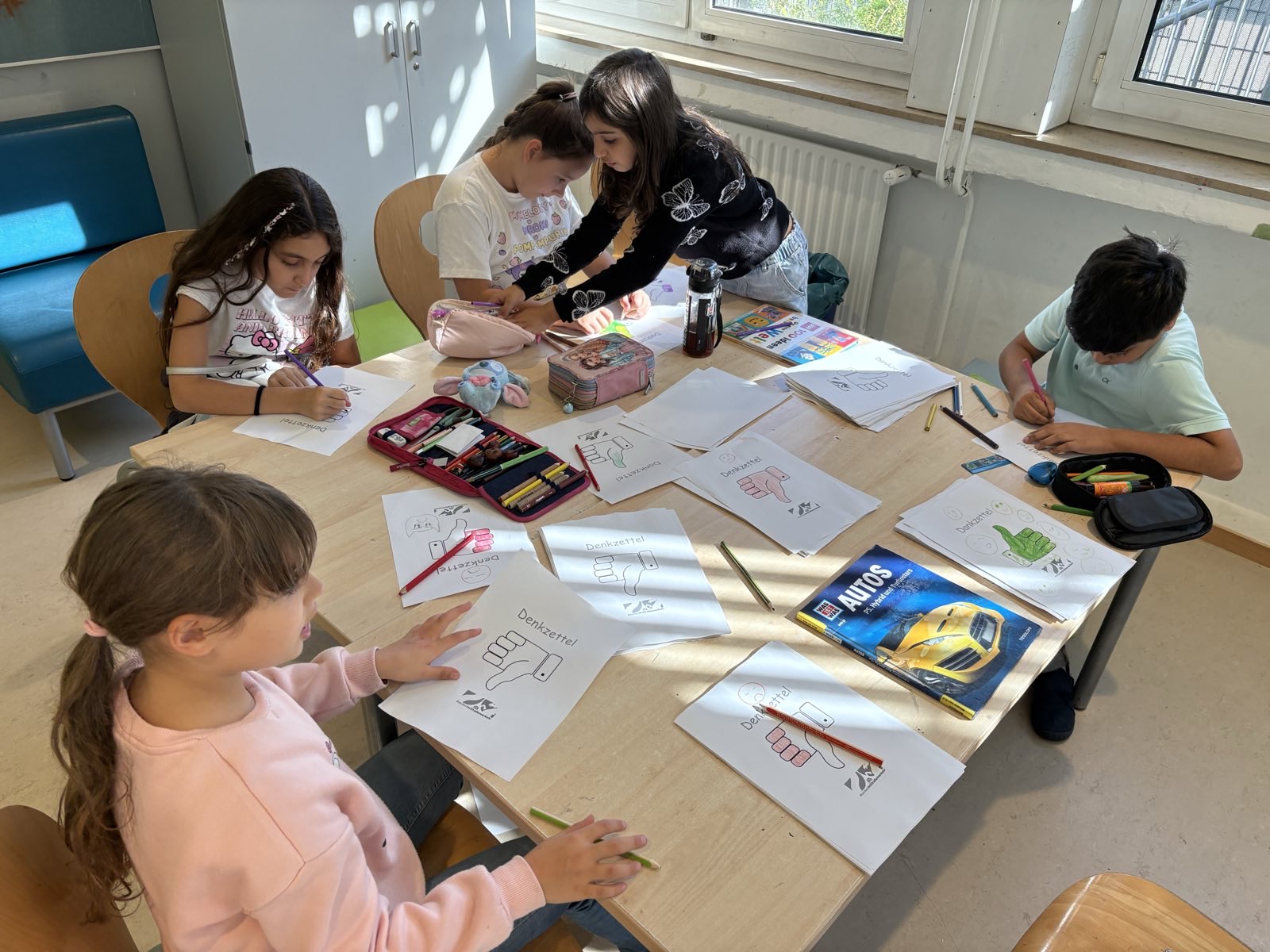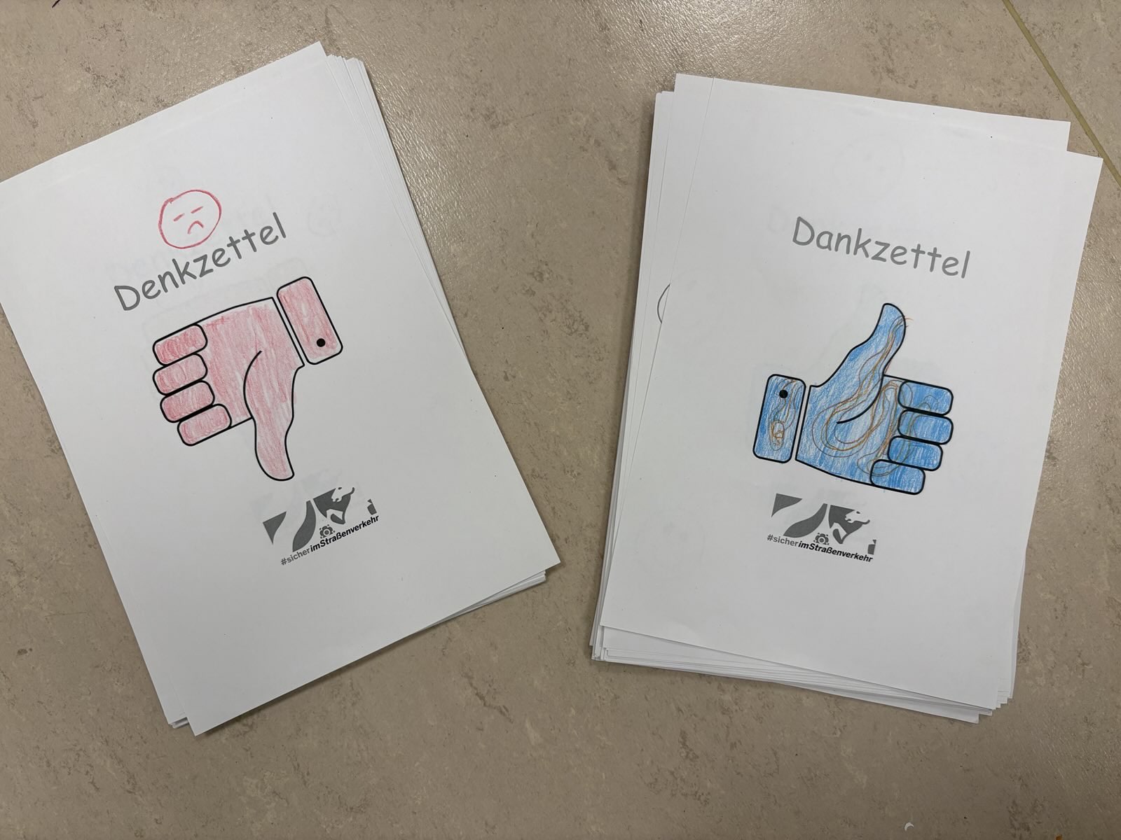 Die Vorbereitung für die Aktion „Dank- und Denkzettel“ lief sehr akribisch ab und heute war es soweit: An der Ecke Siegfried-Drupp Straße und Gleiwitzstraße standen wir mit vielen Kindern und unserer Verkehrspolizei und verteilten entweder DANKZettel oder eben DENKZettel. Wir hoffen, dass die Autofahrer:innen, die zu schnell gefahren sind, zukünftig mit angemessener Geschwindigkeit fahren. Im Sinne unserer Kinder.