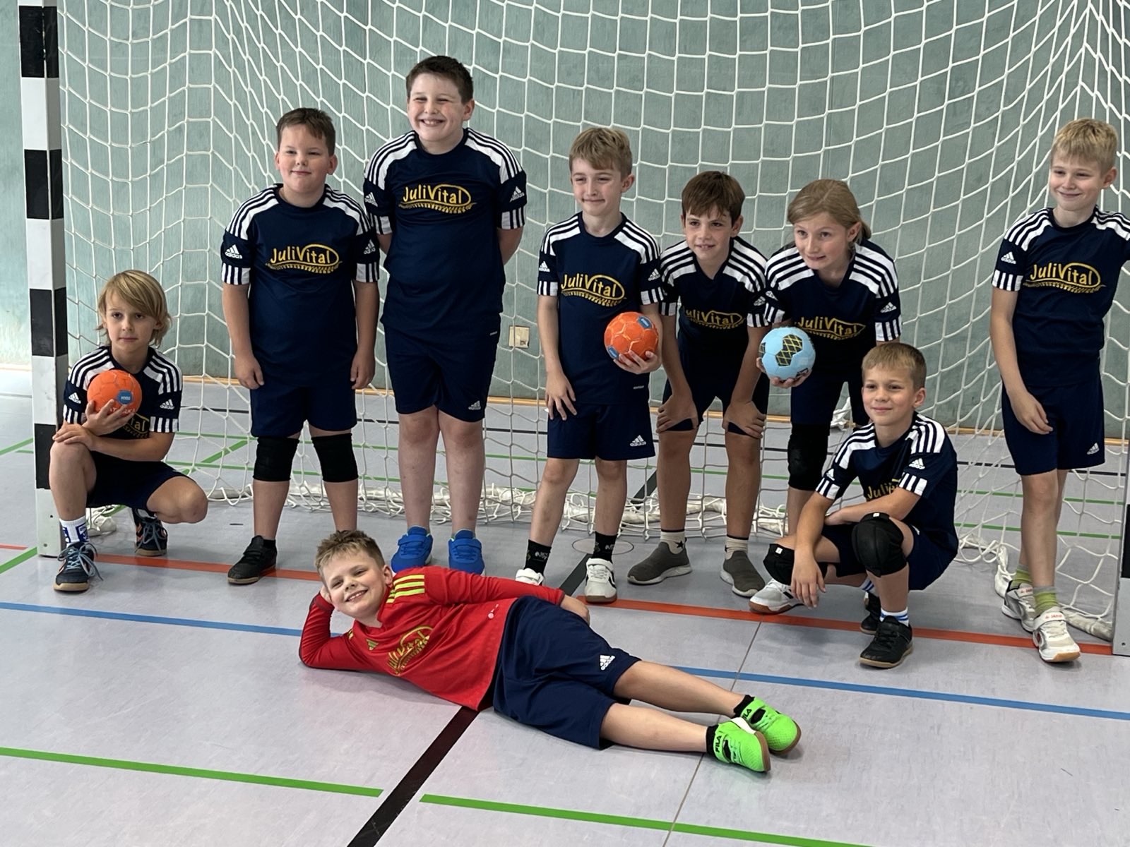 Trotz viel Engagement der Kinder sowie der einiger unterstützender Eltern, allen voran Herr Thurau, der das Teammanagement übernahm, reichte es gegen die beiden anderen Teams nicht zum Weiterkommen. Ehrlicherweise muss man sagen, dass die anderen Schulen stärker waren. Dennoch sind wir stolz auf unsere Handball-Kids, dass sie unsere Schule toll und fair vertreten haben.