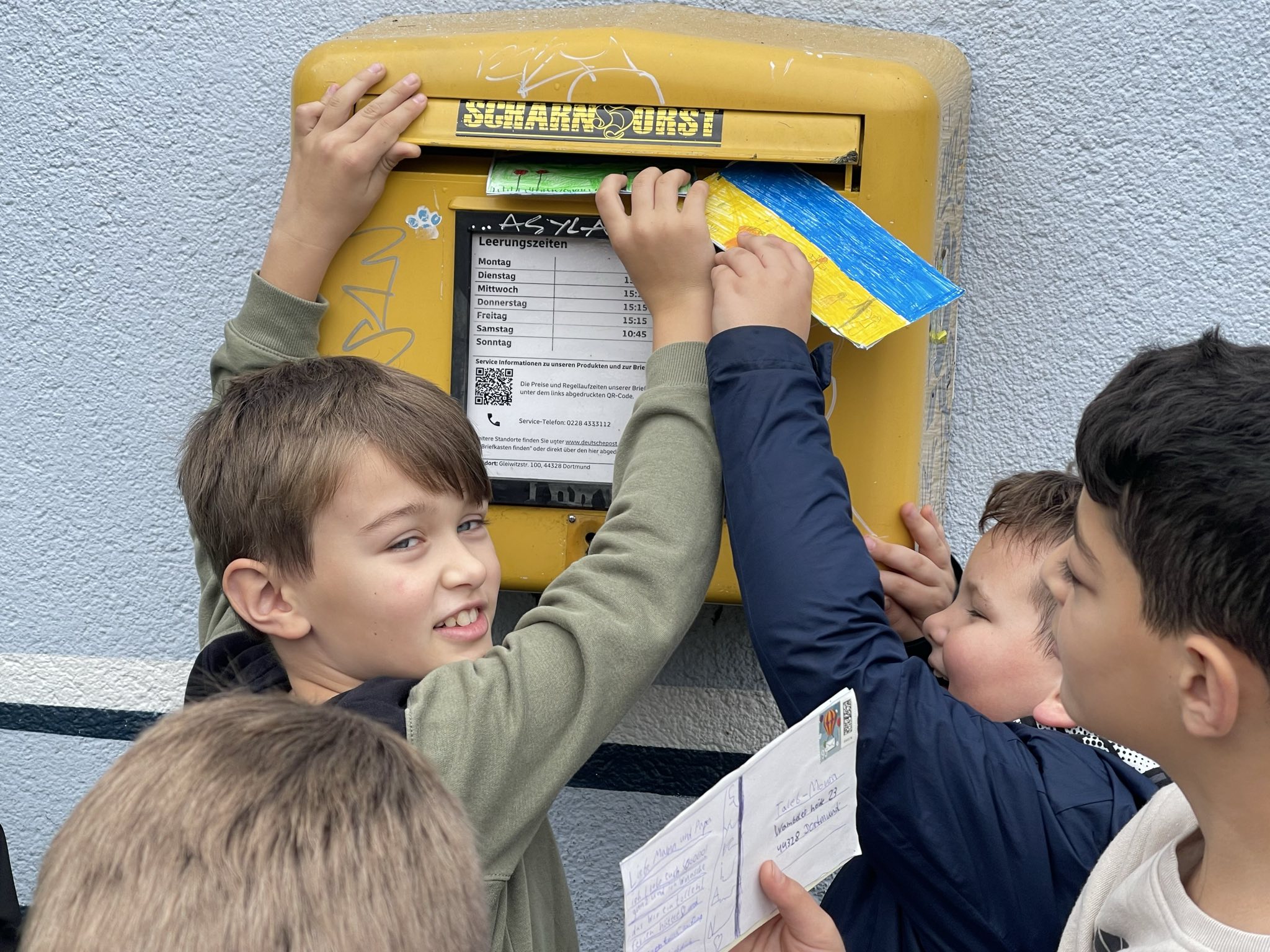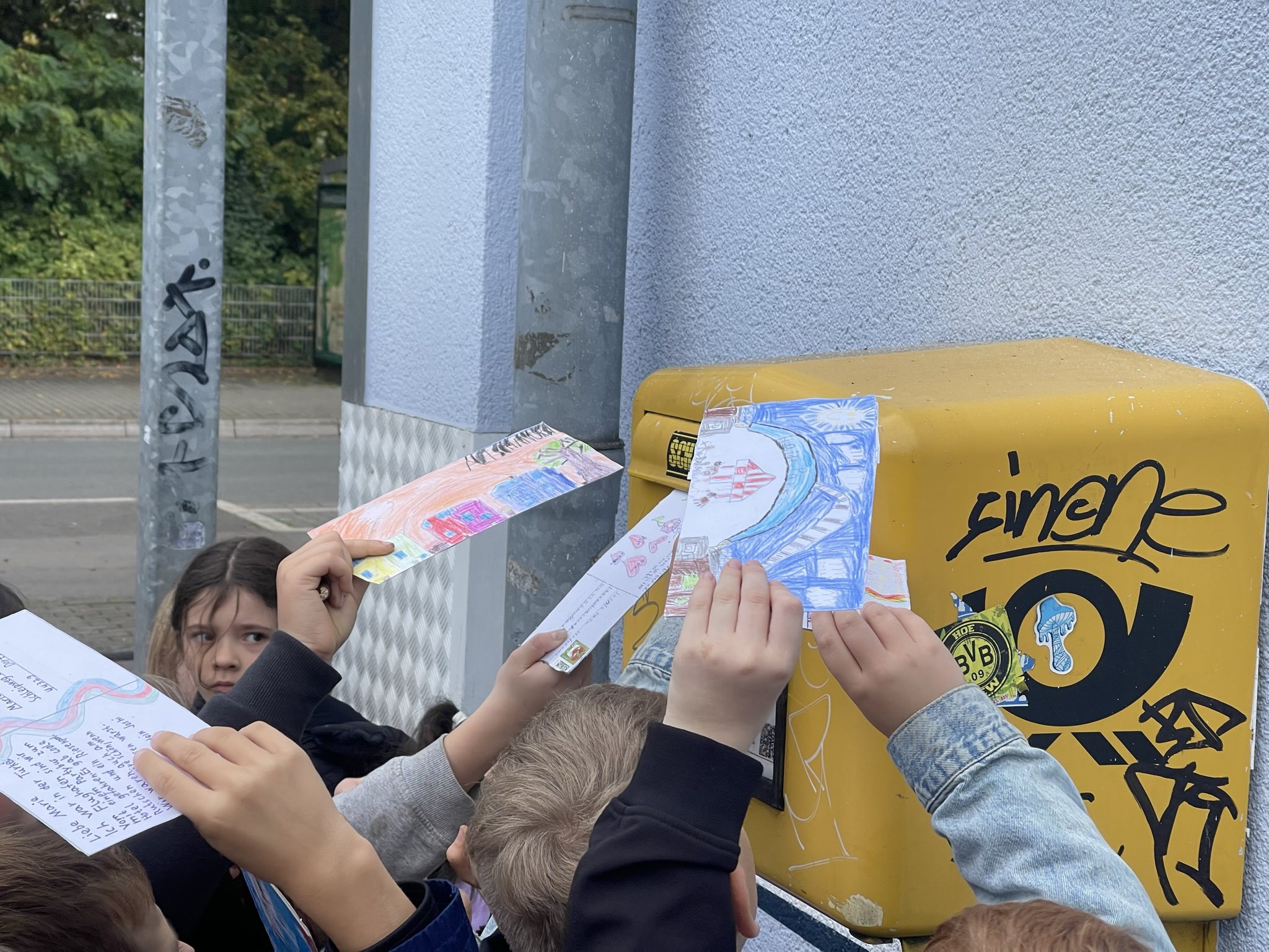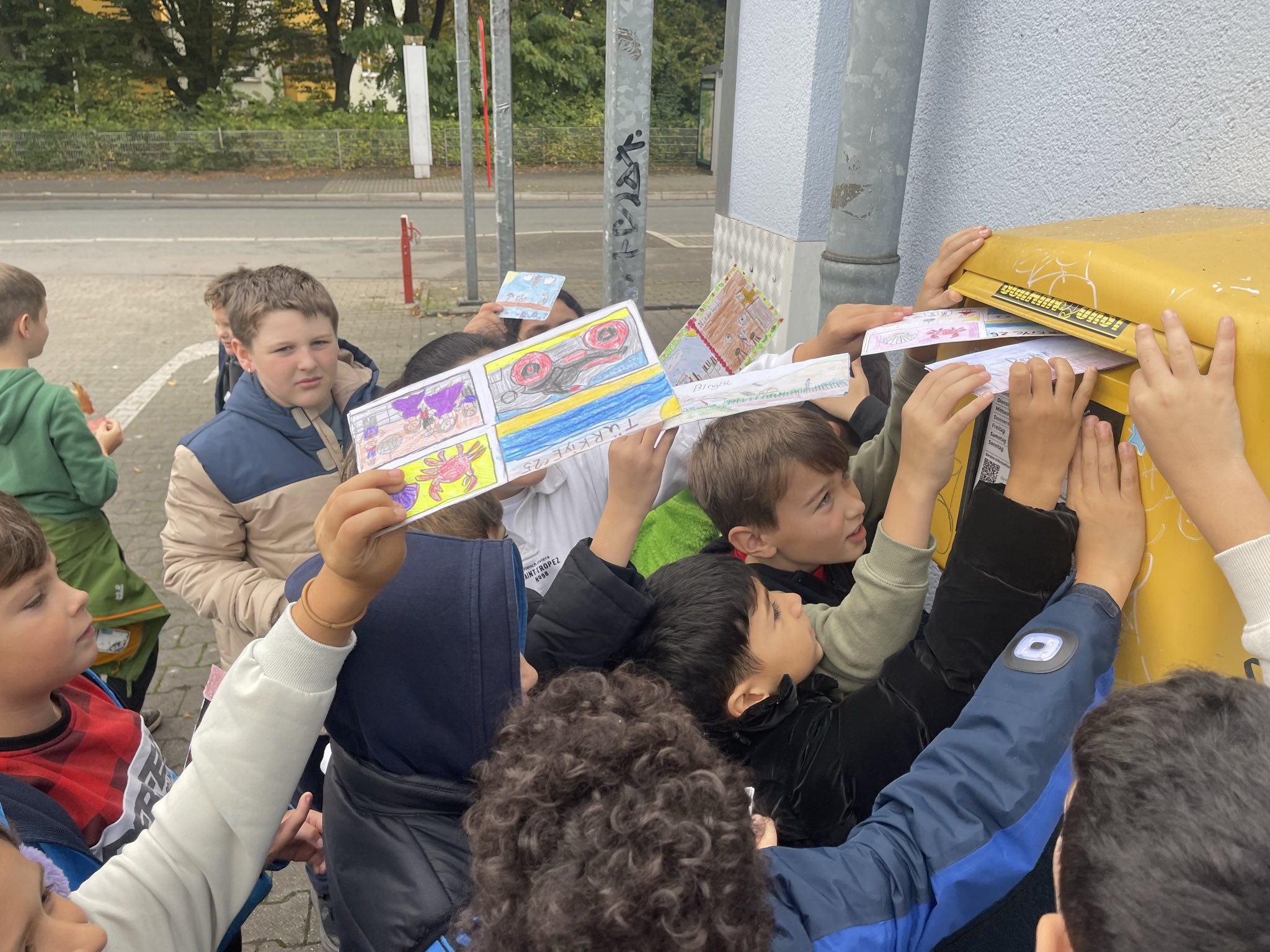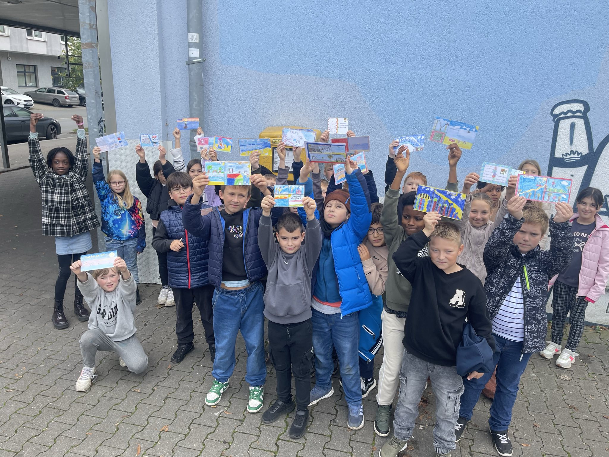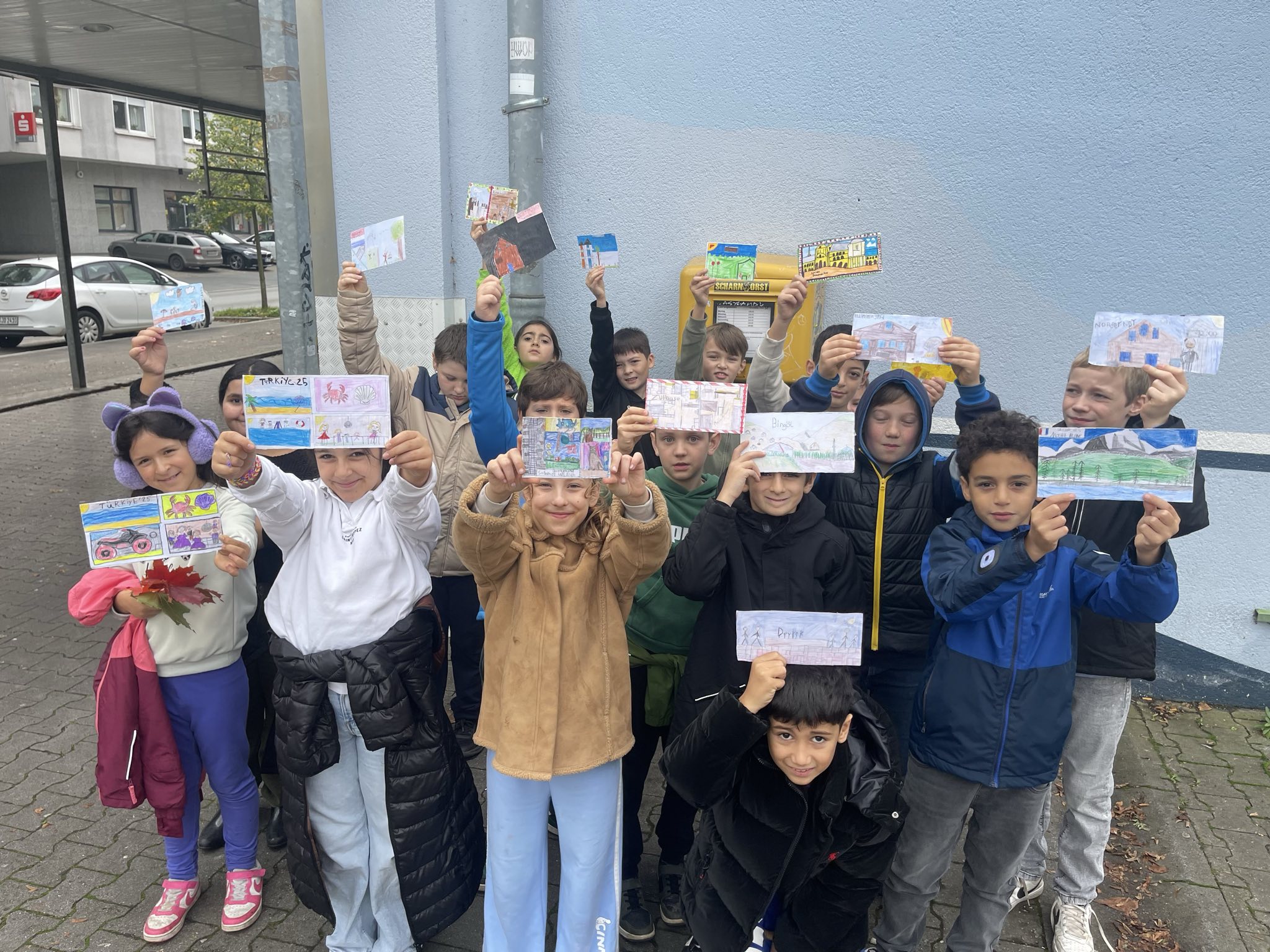 Die Kinder der vierten Klassen der Europagrundschule haben im Kunstunterricht das Thema „Postkarten“ behandelt.