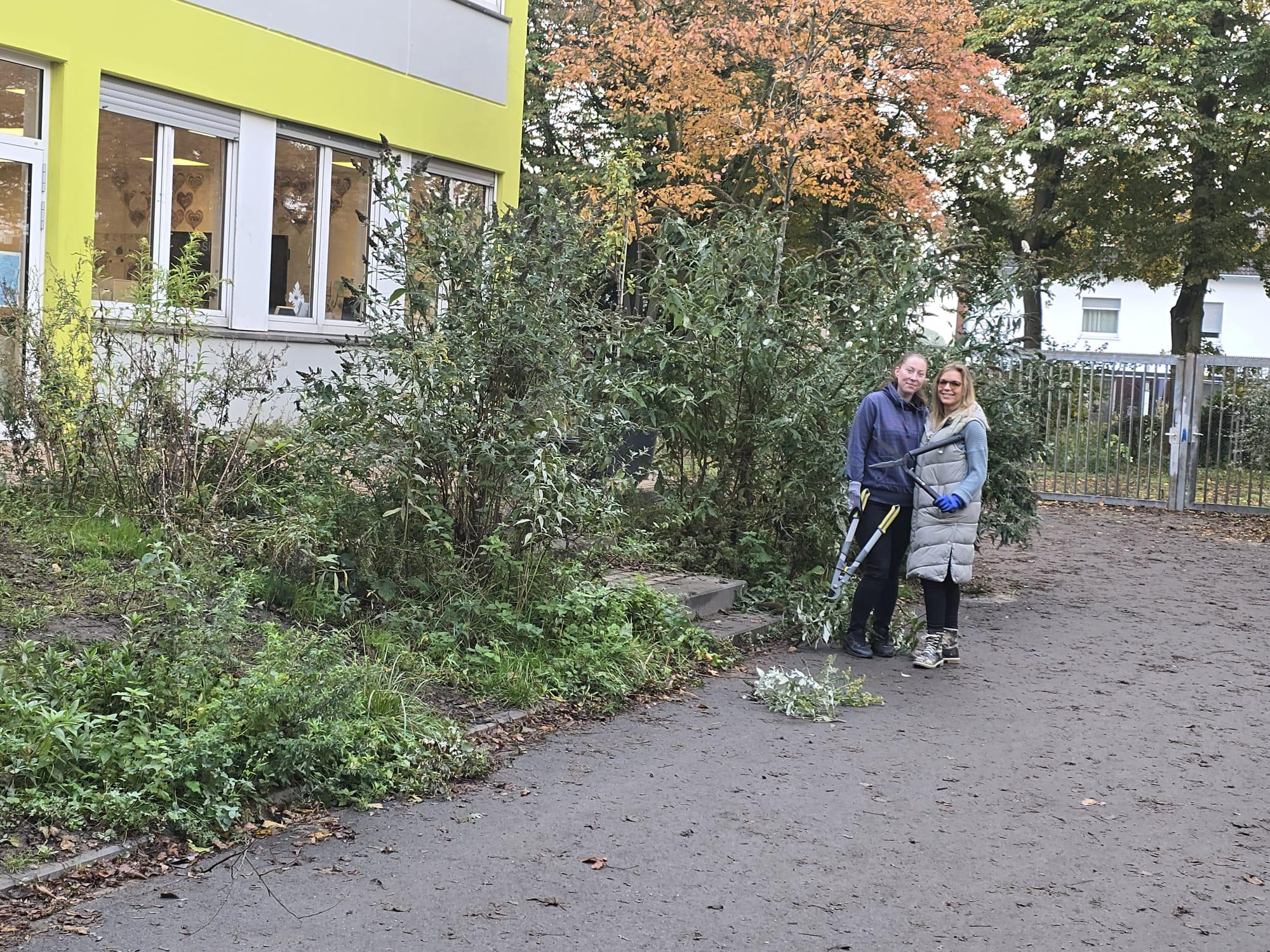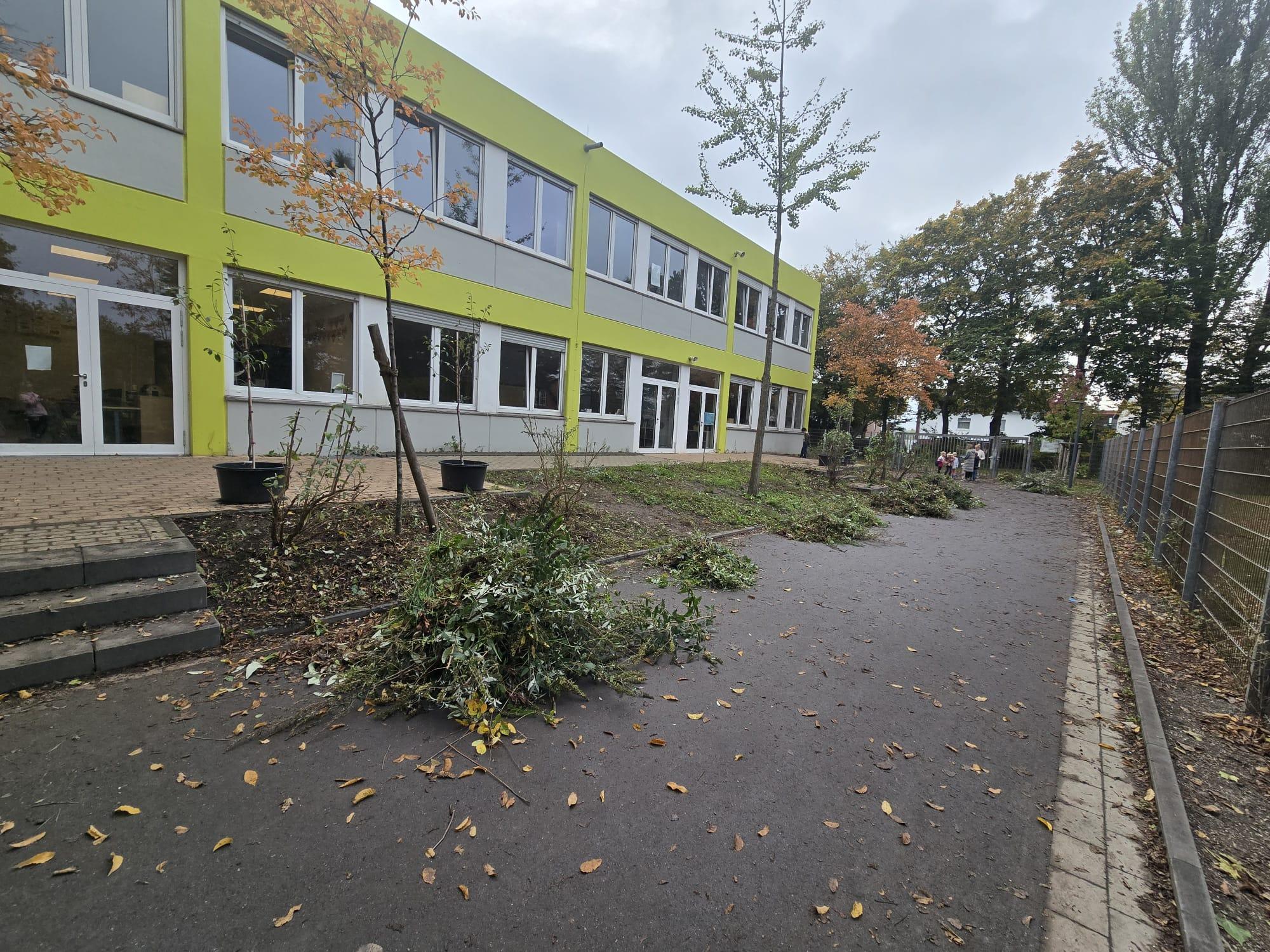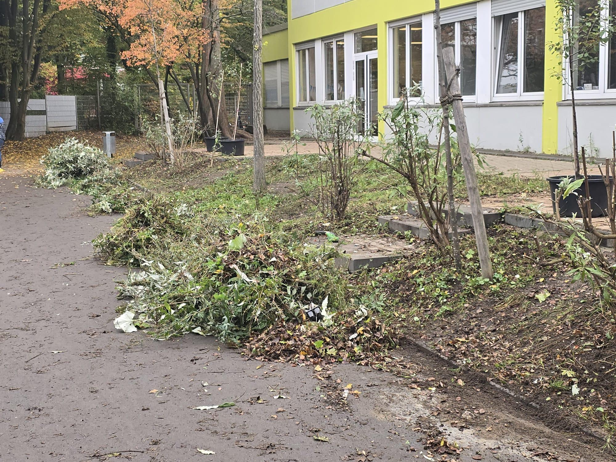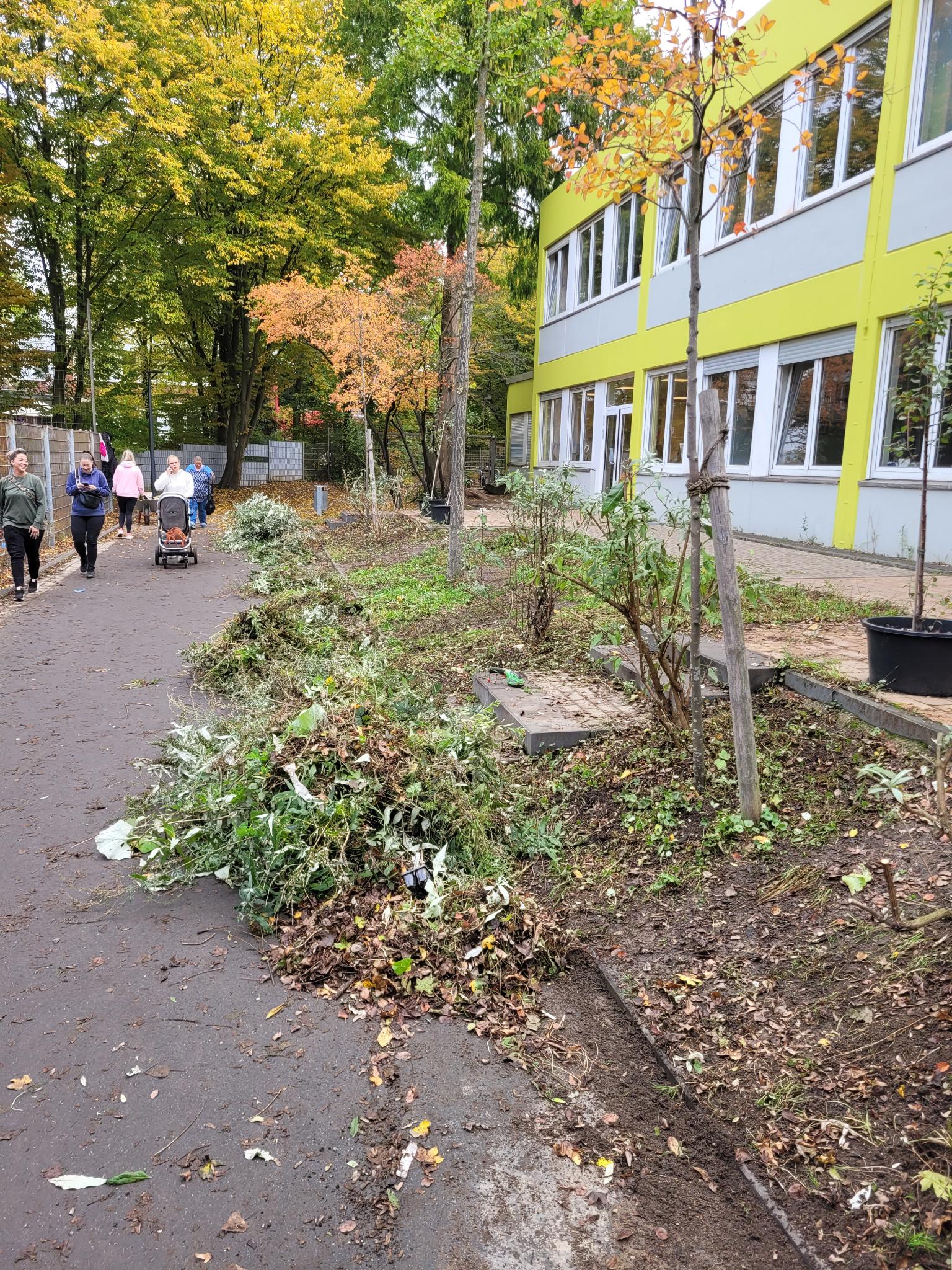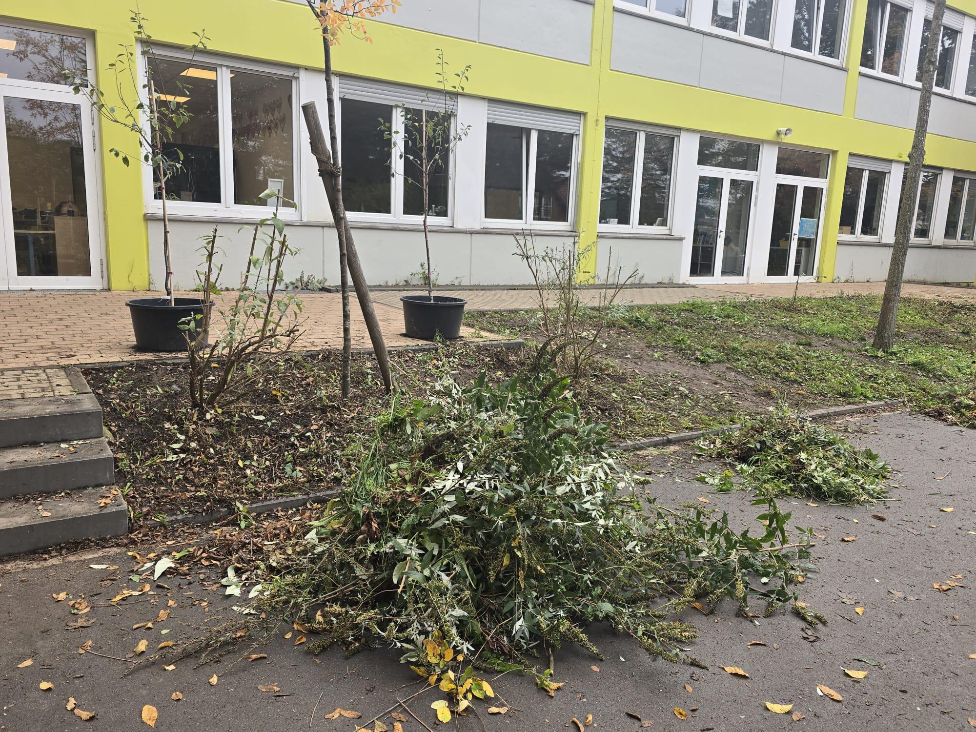 Heute war der letzte Schultag vor den Herbstferien und auch ein Projekttag mit einigen Eltern und pädagogischen Mitarbeiter:innen, die auf dem Schulgelände sich um Beikraut, Rasenkanten, Laub und Rückschnitte kümmerten. Auch ein Kompost wurde neu angelegt.