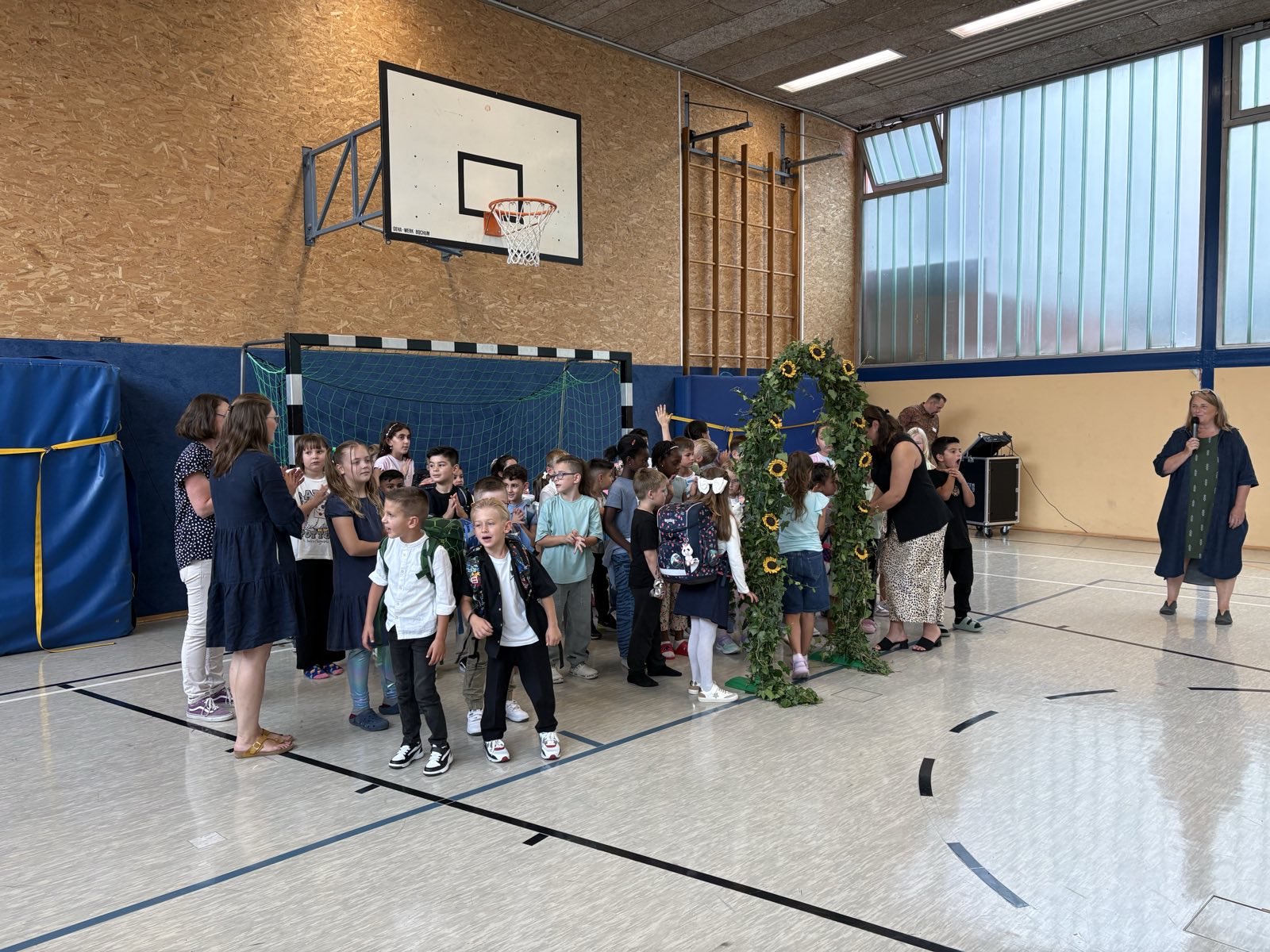 Die Papageientaucher (1a) und die Schildkröten (1b) sowie die Polarfüchse (1c) begannen einen neuen Lebensabschnitt. Der erste Tag ihrer Grundschulzeit startete. Zunächst wurden die Papageientaucher von Frau Tewes eingeschult. Danach die Schildkröten von Herrn Borriello und zu guter Letzt wurden die Polarfüchse in unserer Schule willkommen geheißen. Hier führte Frau Laroussi, unsere Schulleitung, durch die Einschulungsfeier. Die 4b von Frau Weiß sowie die 4a von Frau Hüster hatten eine musikalische Begrüßung für die Kinder vorbereitet. Nach der Einschulung durften die Kinder auch die erste Schulstunde erleben.