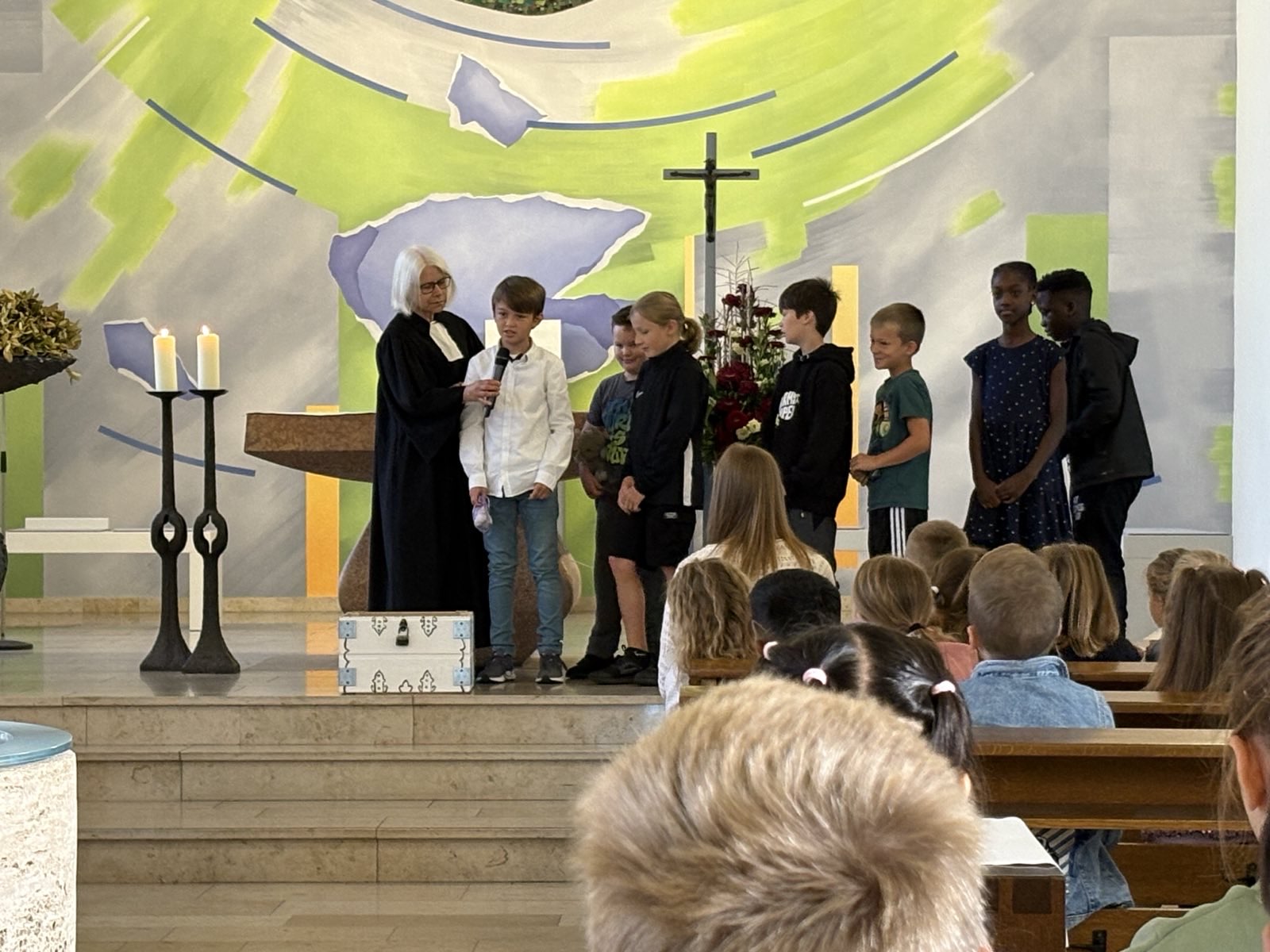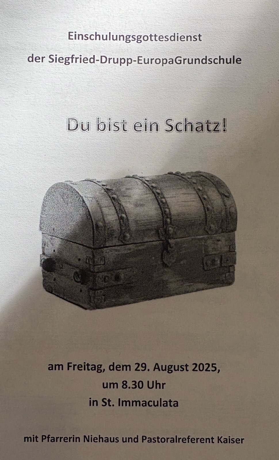 Heute fand der Einschulungsgottesdienst für unsere neuen Lernanfänger in der St. Immaculata Kirche statt. Frau Niehaus und Herr Kaiser führten durch den Gottesdienst, der den Kindern einen guten Segen für ihr (Schul)Leben geben sollte.
